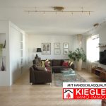 Den Eingangsbereich bildet ein geräumiges Vorzimmer, von dem aus rechterhand in eine offene und helle Küche (Markenküche, Miele-Geräte, Granitarbeitsplatten) liegt, die auch ausreichend Platz für eine Sitzecke mit Esstisch bietet.