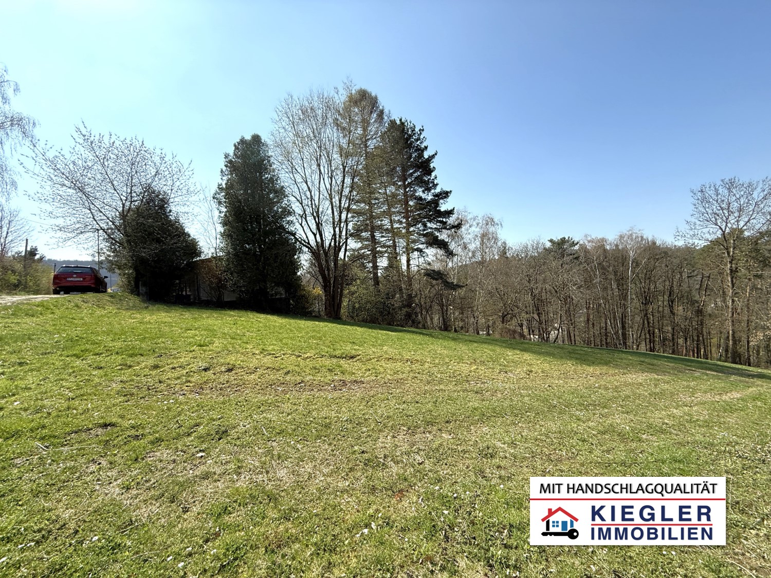 Das Grundstück grenzt im Westen direkt an das umliegende Grünland mit Wald an – hier genießen Sie absolute Privatsphäre und den unverbaubaren Blick in die Natur.