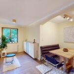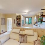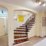 Eine gewendelte Massivtreppe führt vom Wohn-/Eßbereich in das Obergeschoß mit Ausgang zur hinteren Terrasse und in den Garten.