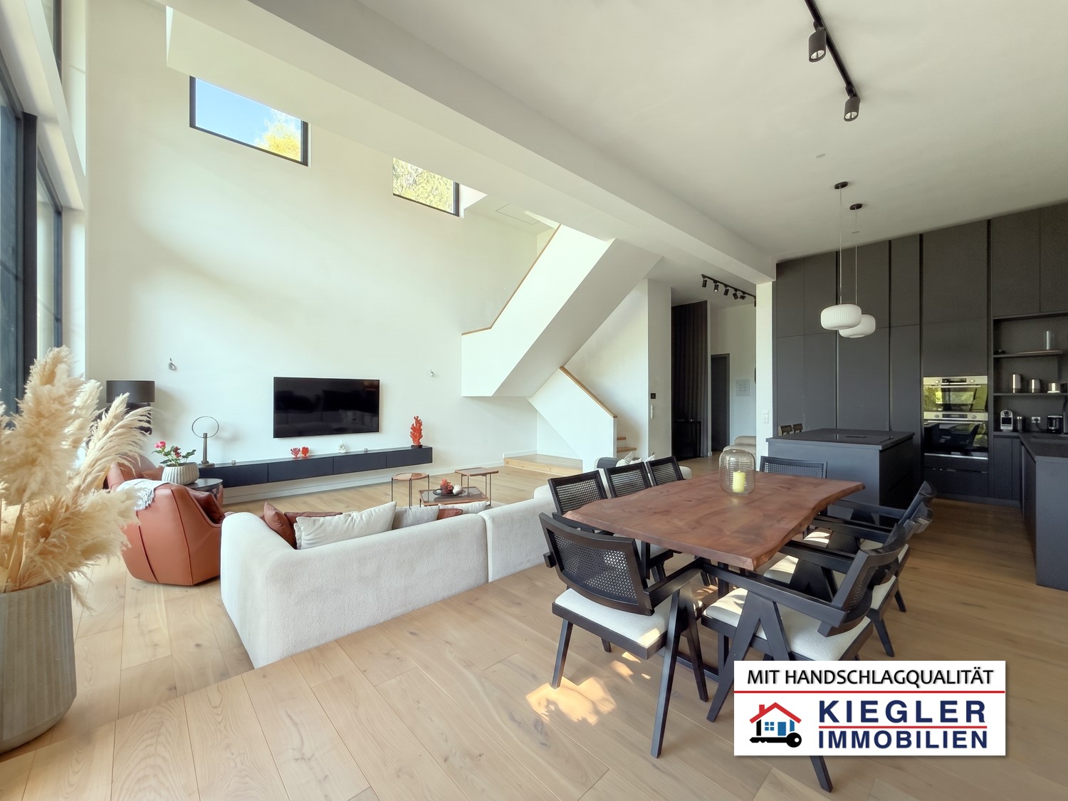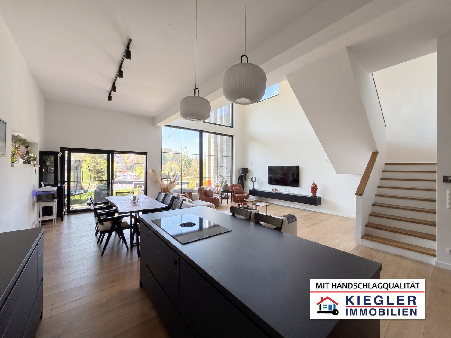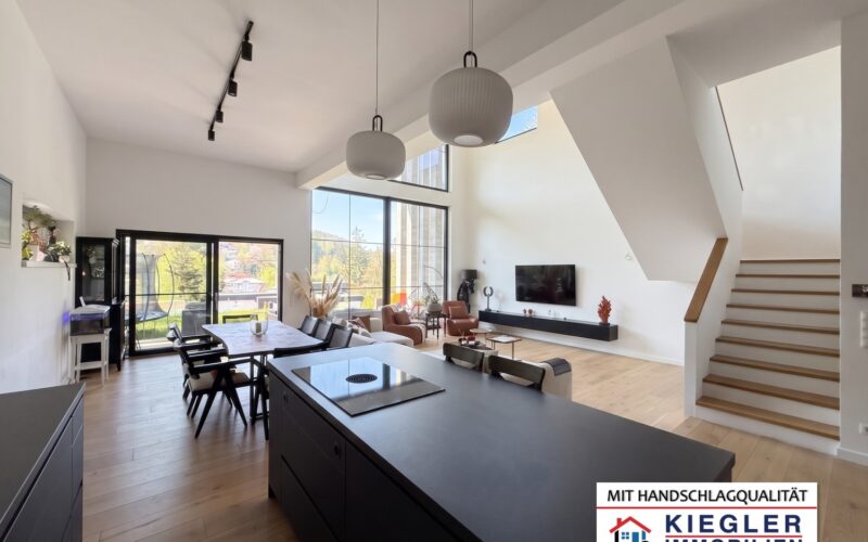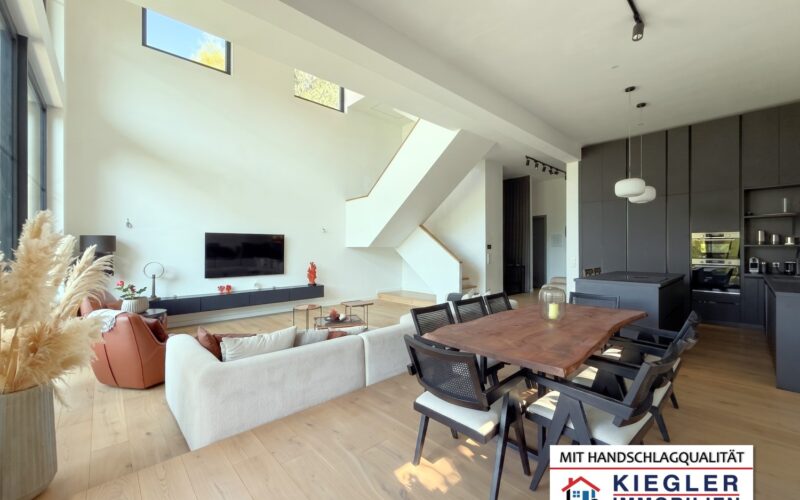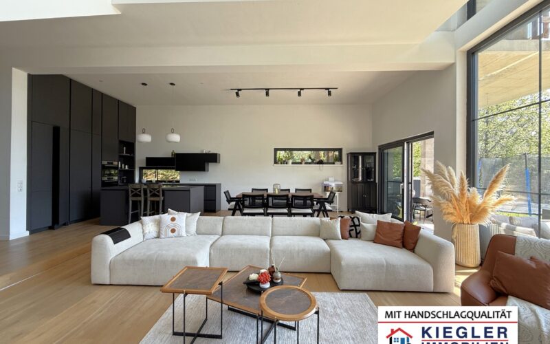 Treten Sie ein in eine Immobilie der Extraklasse. Dieses großzügige, architektonisch herausragende Einfamilienhaus in zentrumsnaher Ausblickslage von Eichgraben vereint modernes Design mit kompromisslosem Raumgefühl. Mit einer atemberaubenden Raumhöhe von bis zu 4,50 Metern im Erdgeschoß, riesigen Panoramafenstern und einem lichtdurchfluteten Dachatelier bietet dieses Objekt ein unvergleichliches Wohnerlebnis auf ca. 235 m² Wohnfläche.