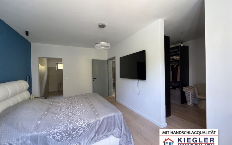 - Master-Suite: Ein 17 m² großes Hauptschlafzimmer, das nahtlos in einen 10 m² großen Ankleidebereich übergeht und durch ein privates, 8 m² großes Luxus-Bad inkl. WC abgerundet wird.