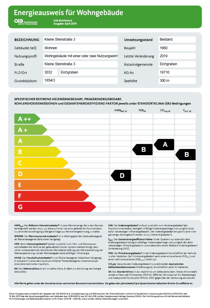 • HWB (kWh/m²/Jahr): 89, HWB Energieklasse: C