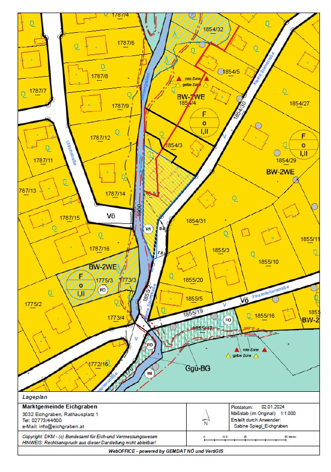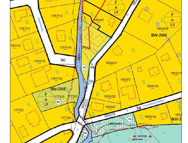 • Bauplatz: 700 m² BW-2WE, ca. 233 m²  akt. von Bausperre betroffen (hinteres Drittel).