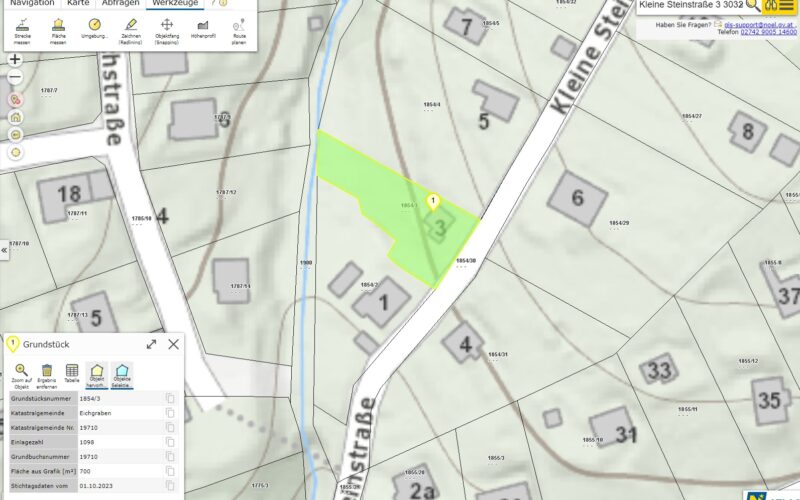 • Das Grundstück befindet sich im beliebten Ortsteil Stein in der Wienerwaldgemeinde Eichgraben.